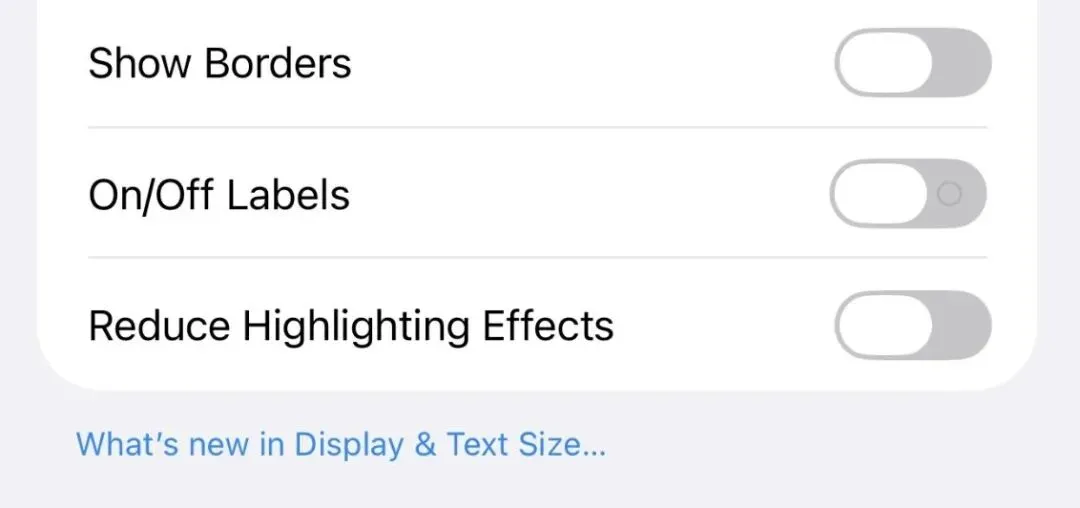 在设置当中找到辅助功能,然后再找到显示与文章大小的路径。在这里多出了一个开关。苹果希望界面按钮边缘的玻璃质感变弱,以此来减少视觉上的干扰。