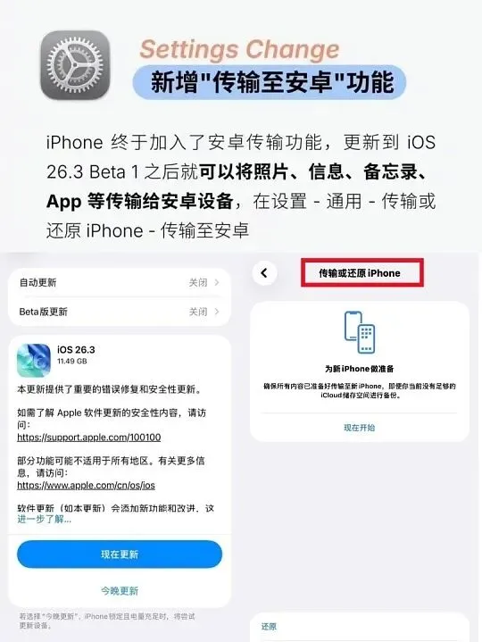 iOS 26.4 Beta 2主要是推进跨平台的RCS协议,还有几个相对不太重要的界面方面的细微调整。而安卓这一方面,各个家的旗舰机型在底层系统的优化以及调度方面现在是特别地激烈。
