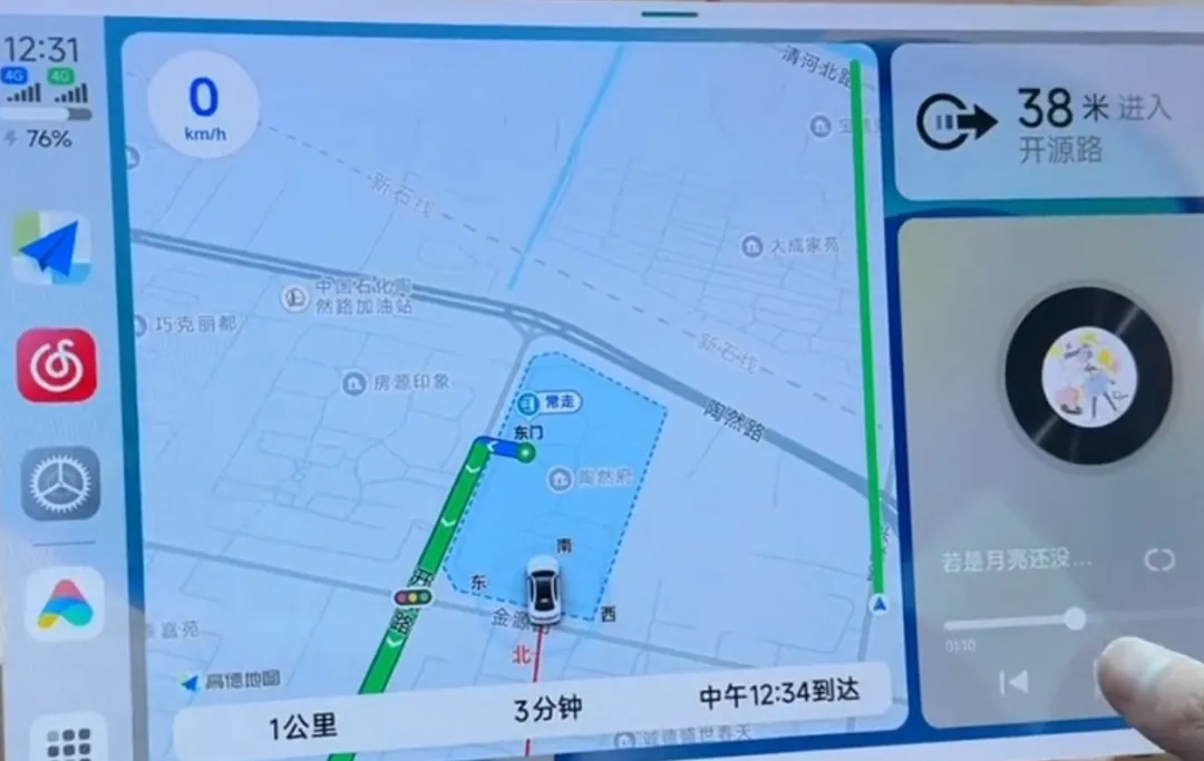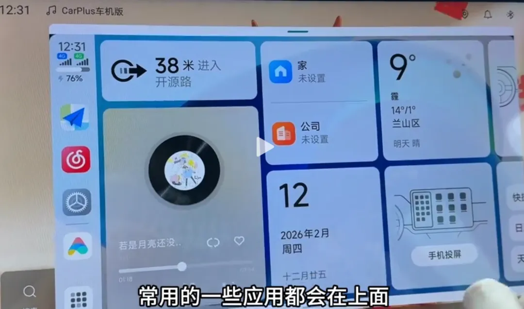 第二个,它支持无线互联,左侧导航,右侧听歌,直接播放音乐,导航的过程中声音是从主驾驶位的喇叭发。而且呢,布局上常用的一些功能都会在上面,操作起来非常方便。