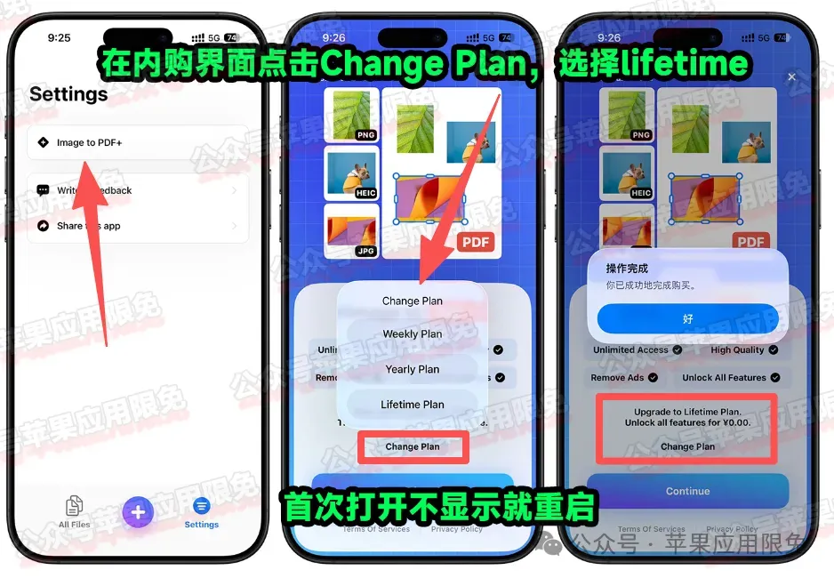 一款图片转PDF工具。目前可以免费获取它的Pro版内购,打开软件从设置进入内购,选择底部的change Plan- lifetime显示0即可免费获取,首次打开不显示就重启,设备需装有 iOS 15 或更高版本。