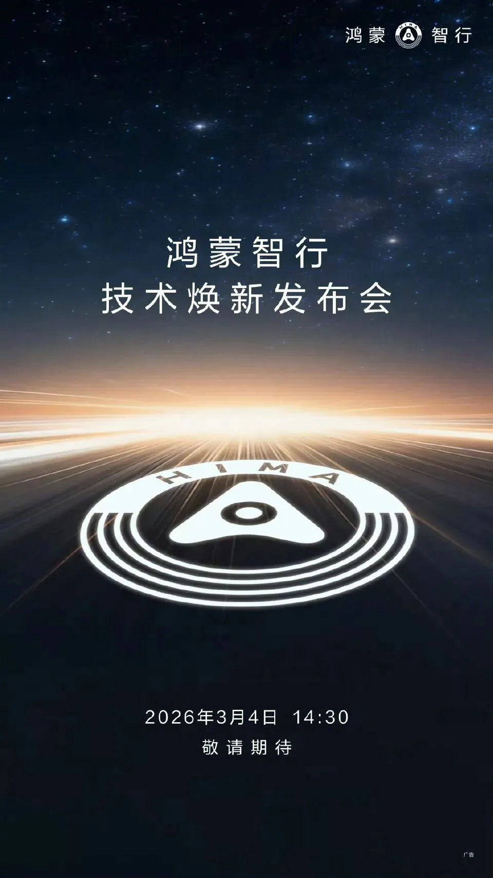 鸿蒙智行技术焕新发布会定档 3月4日 14:30 ,敬请期待!