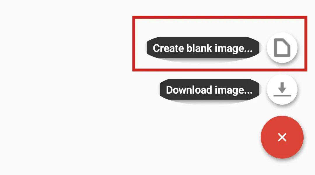 首先在 DriveDroid 主界面点击右下角加号,选择「Create blank image」。