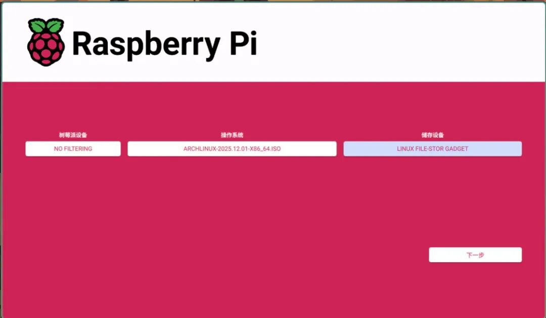 使用数据线连接手机和电脑,在电脑上使用写盘软件(我这里用的是 Raspberry Pi Imager)把系统 ISO 镜像写入到模拟的 USB 设备上。