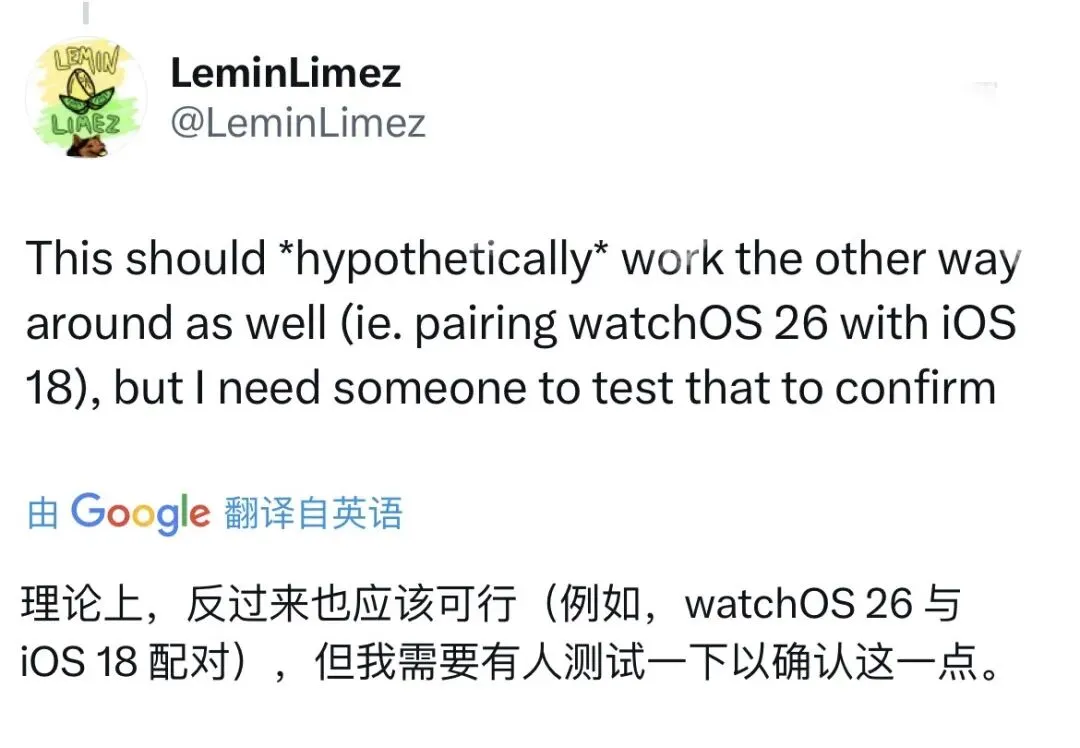 无论你的是iOS版本是多少,都可以与任意 watch OS 版本的 Apple Watch 配对。(比如 : 系统为 iOS 26,可与 watchOS 11 的手表配对)