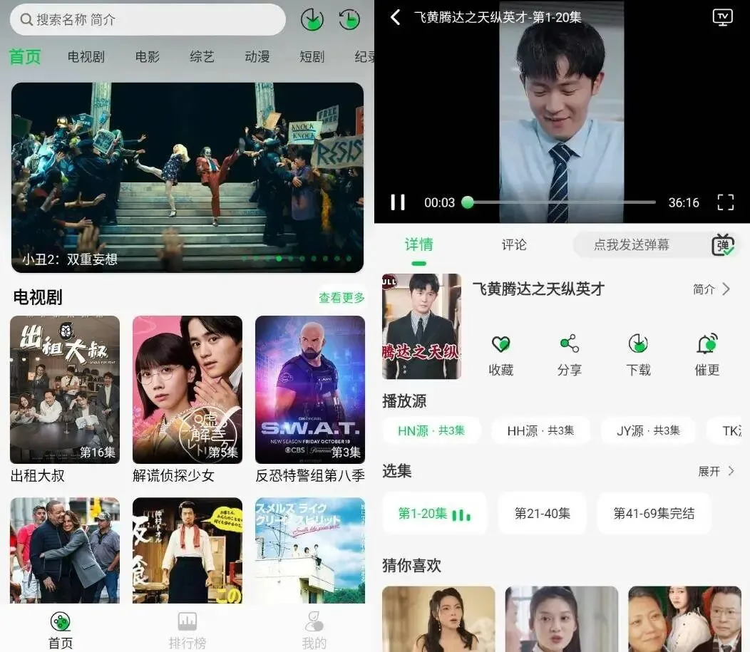 1. **海量全品类影视资源(核心功能)**:聚合全网优质影视资源,涵盖电影、电视剧、动漫、综艺、纪录片、短剧等全品类内容,每日更新量突破500部,涵盖院线新片、热门剧集、经典老片及独家综艺,与卫视同步上线无延迟,无论是《捕风追影》等最新院线大片,还是《现在就出发2》等热门综艺,都能一键找到,无需切换多个平台,真正实现“一网打尽”所有影视资源,满足不同用户的观影需求。