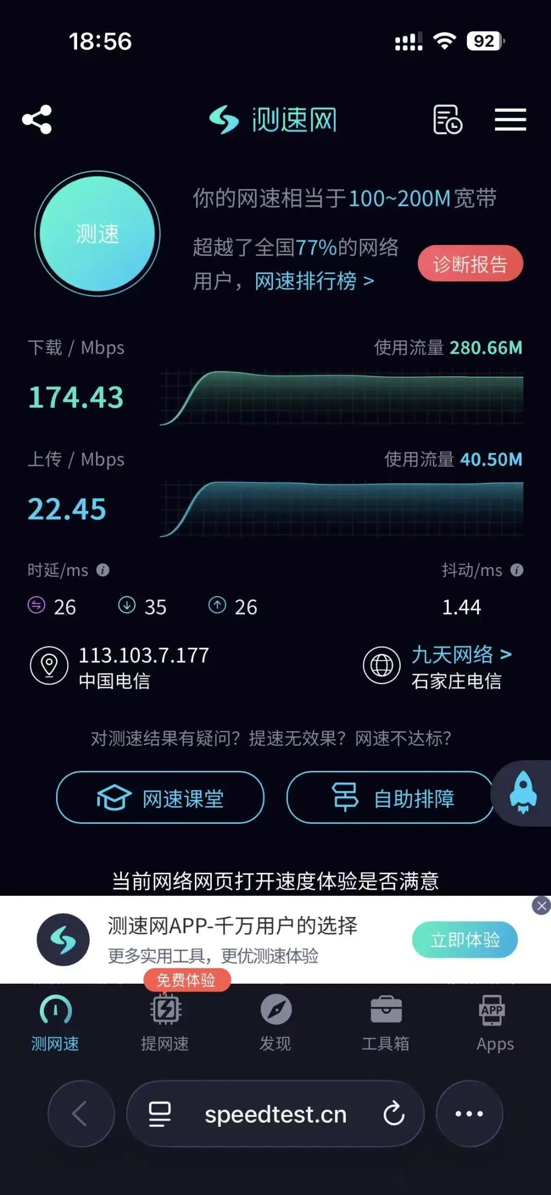 多数人都得装个 Speedtest。