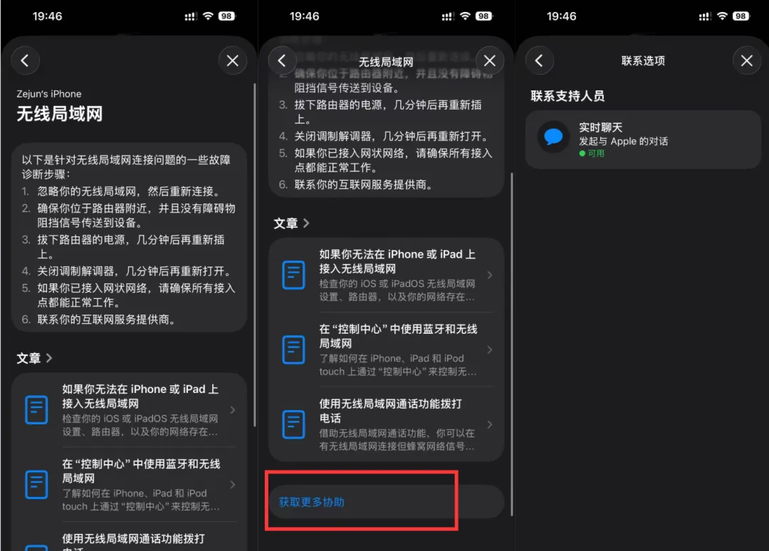 划到最下面「获取更多协助」。