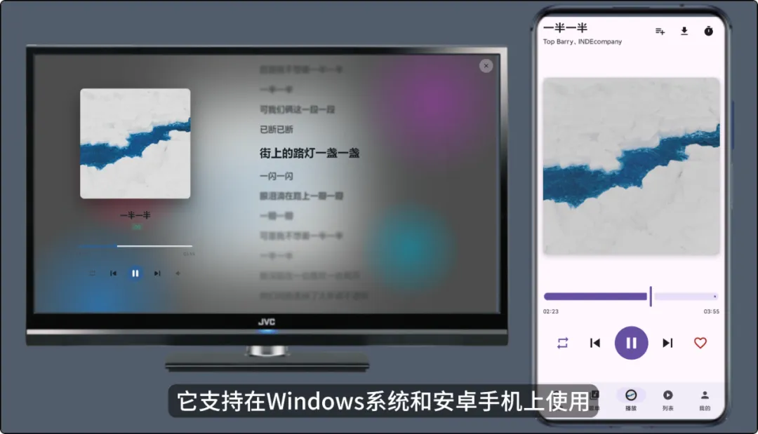 这是一款可以在线听全网歌曲的免费音乐播放器,它支持在Windows系统和安卓手机上使用。