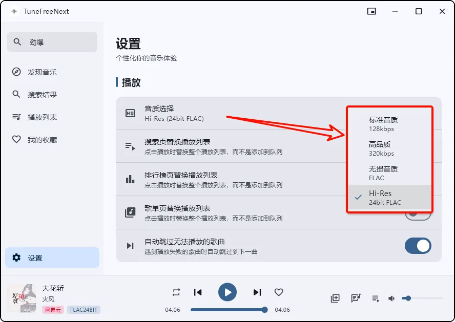 这款音乐播放器界面简洁美观,可收听最高母带级无损音质的音乐。
