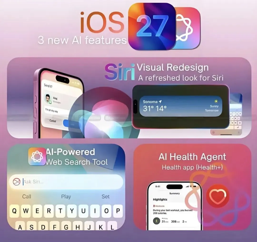 很多人都关心,新系统到底有什么变化?其实这次iOS 27主要更新的都是一些特别实用的功能。比如手机里的语音助手会变得更聪明,反应更快,我们说话它能更准确地听懂。锁屏界面和控制中心也可以自己调整,让手机用起来更顺手。