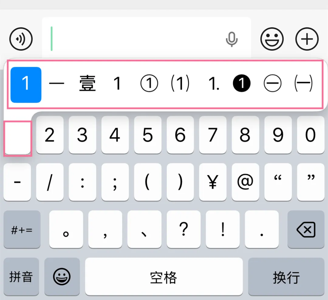 在全键盘输入界面按住数字不放,就会跳出数字的各种特殊形式,除此之外还有货币符号韵母和标点符号的多种用法。