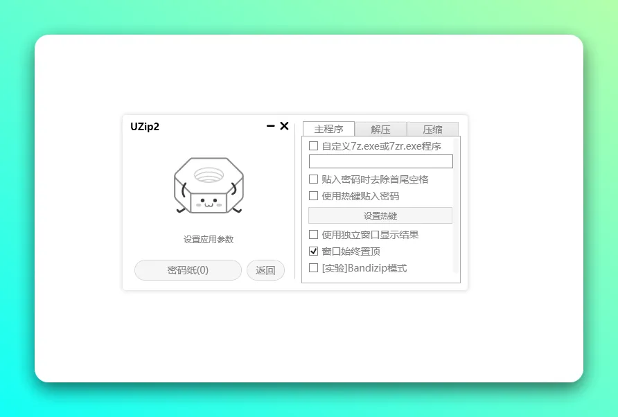 主要用于解压各种压缩档案的小工具「Uzip2」支持保存密码,使用密码纸批量解压带密码的压缩包,基于源代码修改优化程序。
