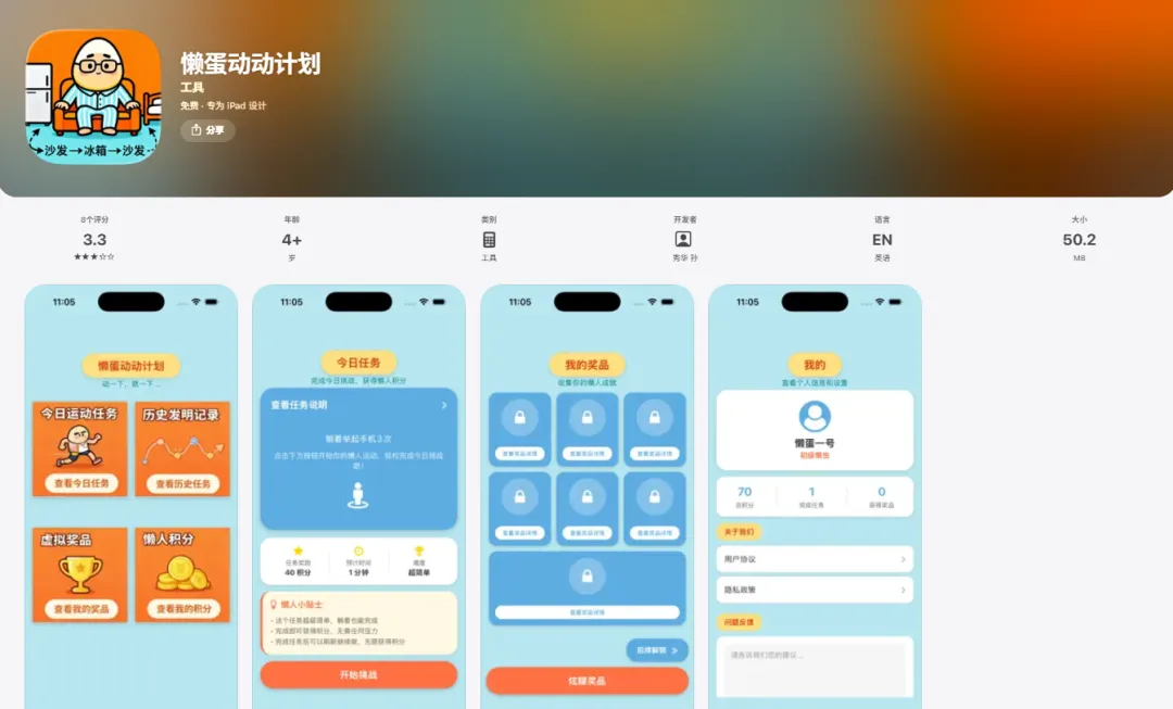 - 下载链接:https://apps.apple.com/cn/app/%E6%87%92%E8%9B%8B%E5%8A%A8%E5%8A%A8%E8%AE%A1%E5%88%92/id6758300215