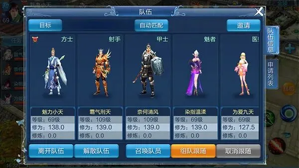 组队完成后,队长可以点击队伍面板的“召唤队员”,要求队员跟随自己。队员也可以主动打开面板点击跟随按钮,角色就会自动跟随队长。游戏中许多任务,都需要队伍全部成员到齐才可以进入副本。