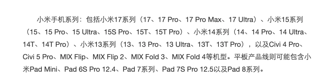 咱们不妨把目光聚焦到这份大名单的核心统治区,也就是小米从13系列一路贯穿到传闻中即将亮相的17全系,以及那些极其金贵的MIX折叠屏家族。