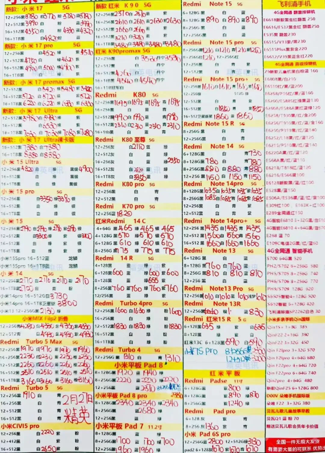 以下报价都是深圳华强北手机批发市场当天的最新批发价格(不含税),报价是我们的批发底价,零售拿货价格需加20~100元不等,京东包邮(量大价格可谈)