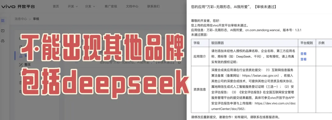 中途走了一些弯路,咨询了 本地网信办人员,以及电话国家备案中心,由于app本身没有提供大模型算法,所以本地的生成式服务备案不需要,但是算法备案还是要提交。既然这样,就根据应用商店的反馈,一点点推进,兵来将挡,水来土掩。