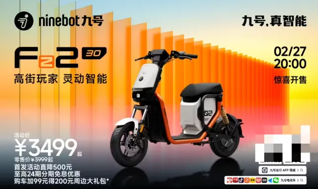 九号电动今日发布了九号 Fz2 30 新国标电动车,20:00 开售,新品首发直降 500 元,活动价 3499 元起,至高可享 24 期分期免息。