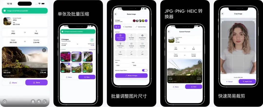🪟 软件简介:一款快速图片转换和压缩工具,支持批量处理JPG、PNG、WebP和HEIC格式。所有操作都在本地设备上离线完成,无需上传,保护用户隐私。支持批量压缩、调整图片大小和格式转换,适合设计师、开发者、卖家等需要频繁处理图片的用户使用。