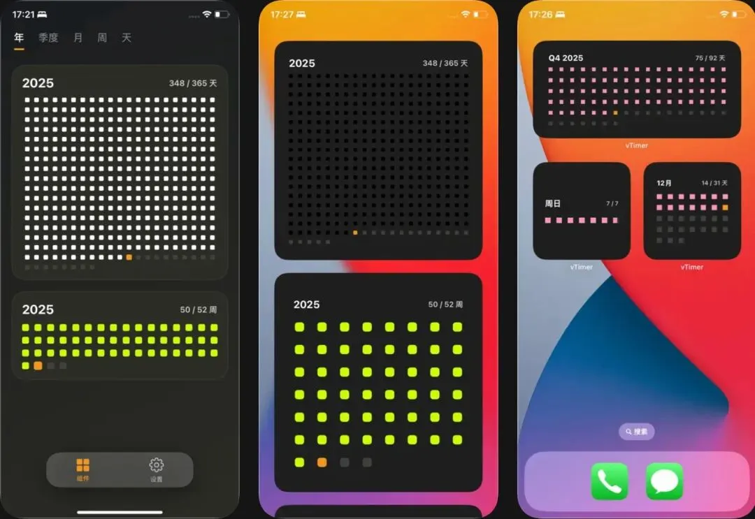 🪟 软件简介:一款时间可视化工具,帮助用户随时感受时间的流逝,提醒专注于更有意义的事。提供丰富的桌面小组件,支持自定义配置修改小组件外观,还支持年度日历组件和快捷指令日历壁纸功能。所有数据本地存储,通过iCloud自动同步备份。
