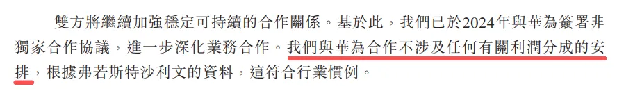 首先,招股书里就明确说了,赛力斯和华为的合作,不涉及任何利润分成的的安排,甚至它还强调了三遍。