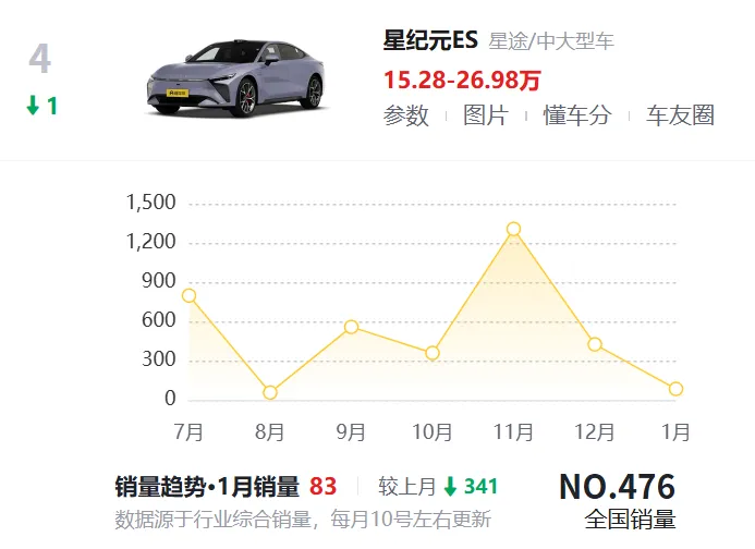 比如智界的销量起来了,但星际元就完全不如人意,长期在几百台的月销量里挣扎。而如果你让江淮自己去做一台 70 几万的豪车,肯定也是不行的。