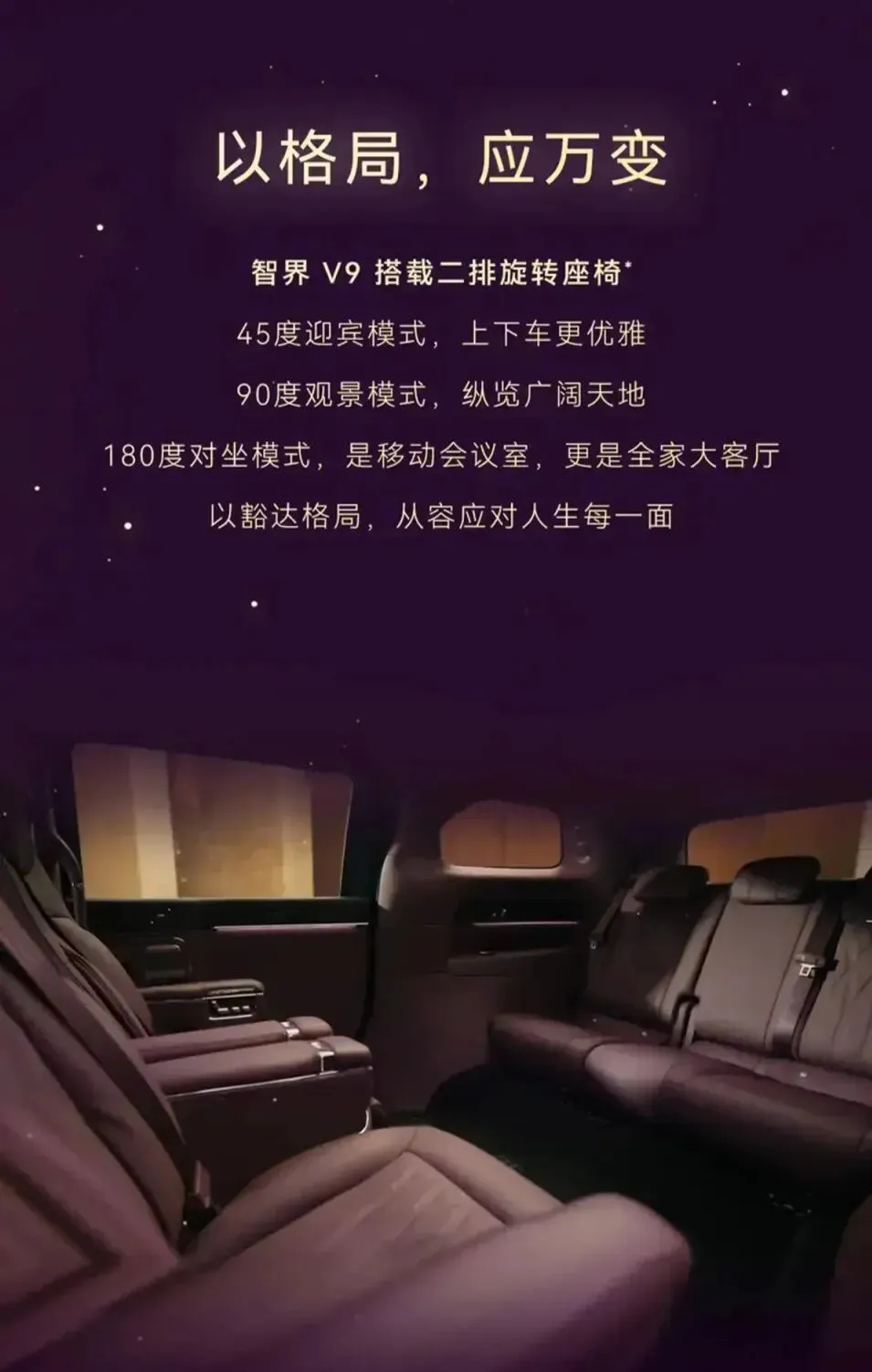 老铁们,我这几天可被一个事儿给整破防了。上周我那个开公司的发小,就是当年非要花八十多万买丰田埃尔法那主儿,突然在群里发了张截图,是智界V9的内饰官图,配了句话:“兄弟们,我可能要叛变了,这二排座椅能转圈,以后公司团建在车里就能开茶话会。”群里瞬间就炸了,有人说“五十万买个1.5T增程器?脑子进水了吧”,也有人怼回去“你懂个锤子,华为技术加持,那能一样吗”。今儿个咱们就着这股热乎劲儿,好好聊聊这台2026年春季即将上市的鸿蒙智行首款MPV——智界V9。