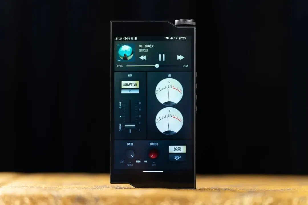 这台机器的“智慧”还体现在它的自适应放大功能。A类和AB类耳放共用已经是HIBY中高端播放器的标配了。我们都知道A类放大响应速度快,输出能力强,所以在驱动高阻耳机,或者是演绎大动态曲目的时候声音比AB类更饱满。但它的缺点也很明显——发热量大耗电多。我们自己在使用播放器的时候,肯定是不可能经常去切换放大模式的,所以RS8II的自适应放大就是提前预判曲目中比较吃电流的段落,然后悄咪咪地把放大模式调到A类,在舒缓的段落则是回调到AB类,在保证声音靠谱的前提下降低了功耗,相当于自带调音师了。我在这段时间的使用中也对比了两类放大的耗电,即便开启最耗电的A类放大+Turbo模式用平衡口播放,续航也超过10小时。如果用AB类放大或者关掉Turbo模式,续航大约在12-15个小时,单端口还能更长。