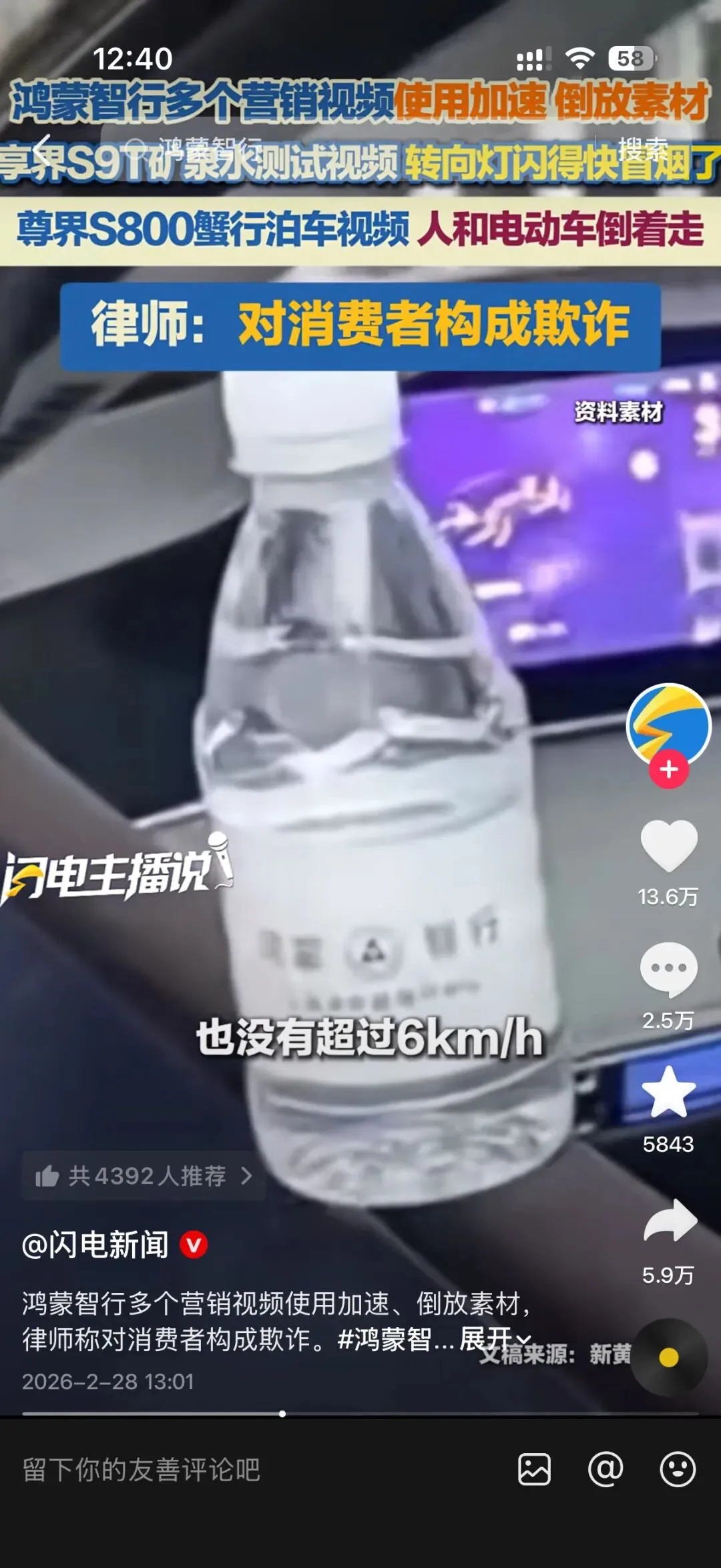 截至2月28日晚间,作为品牌方的鸿蒙智行官方,尚未对此事作出任何正式声明或回应。