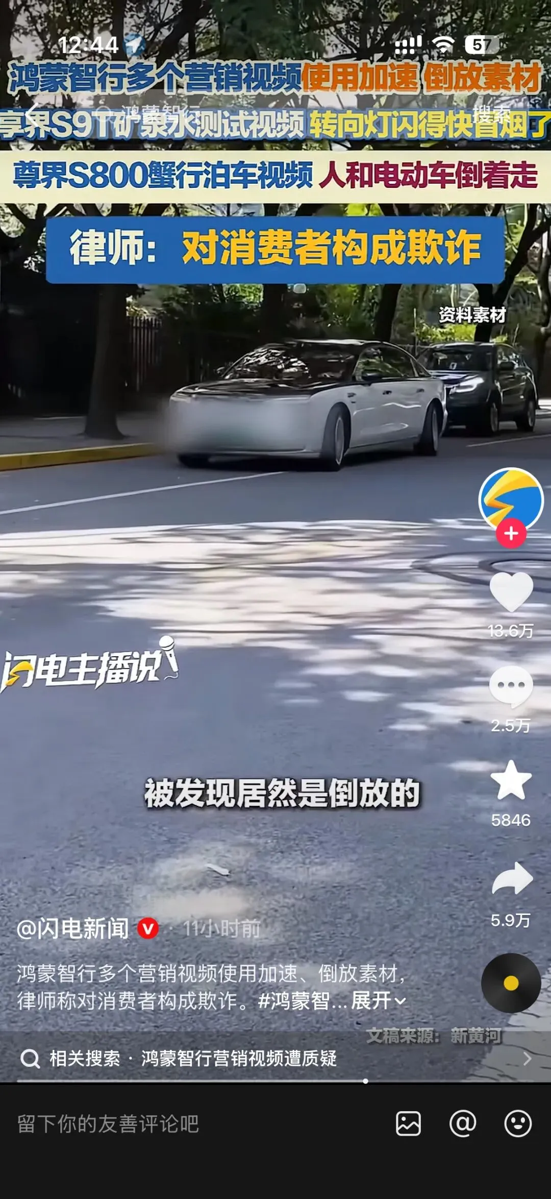世纪公园店的翻车更为离谱。其演示“尊界S800蟹行泊入”功能的视频,竟然被发现有明显的倒放痕迹。