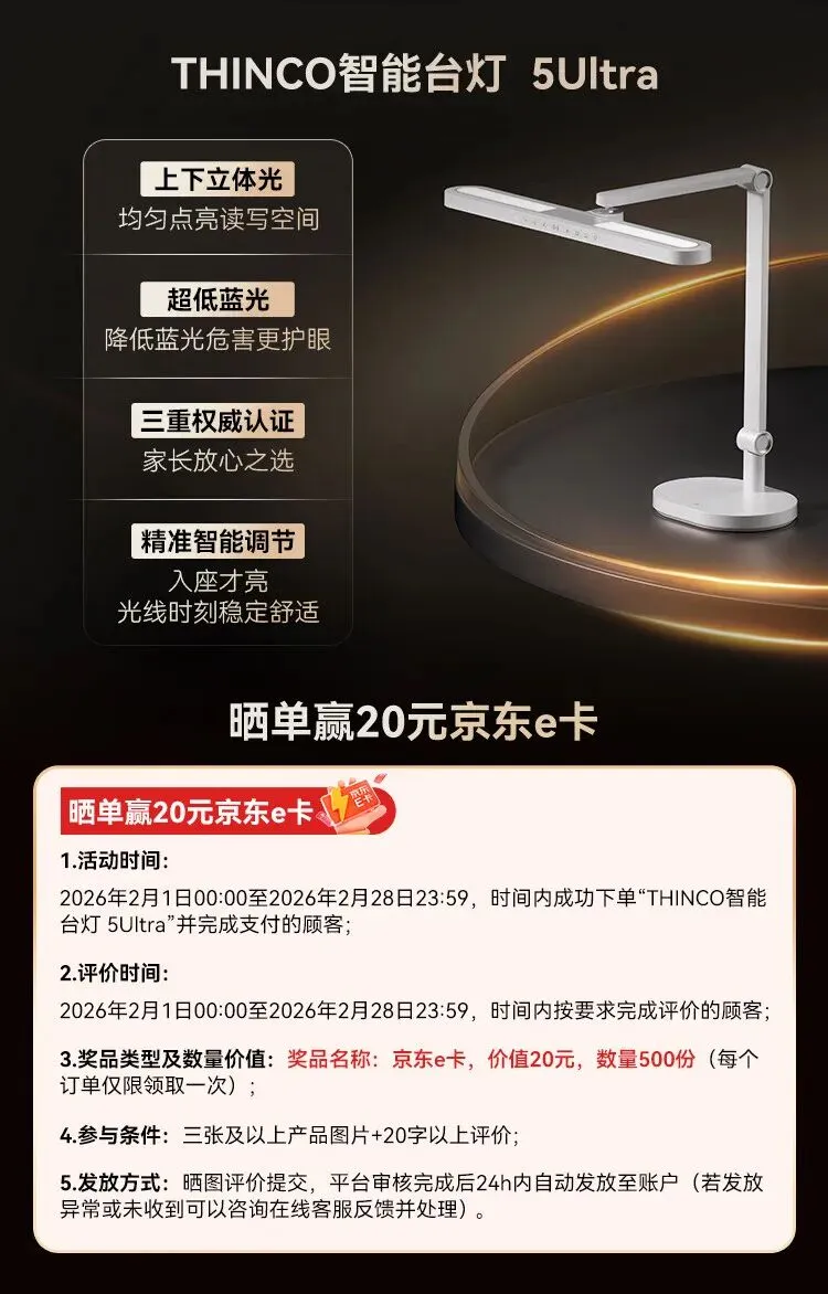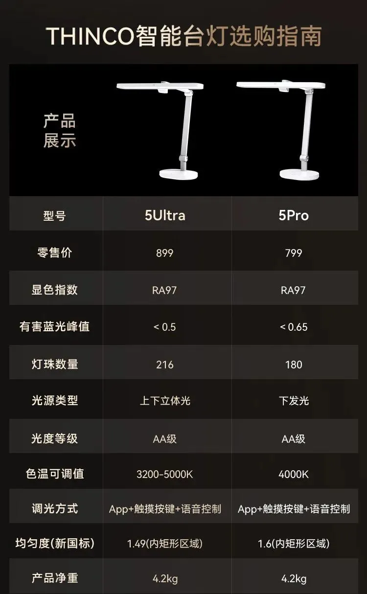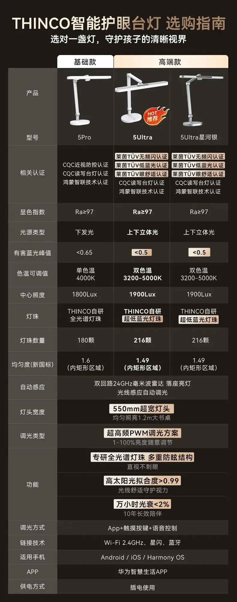 >鸿蒙智选THINCO智能护眼台灯学习学生防蓝光防近视全光谱感应灯5Ultra