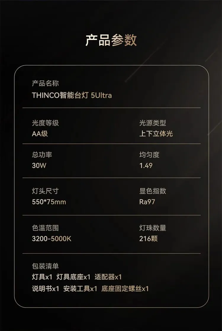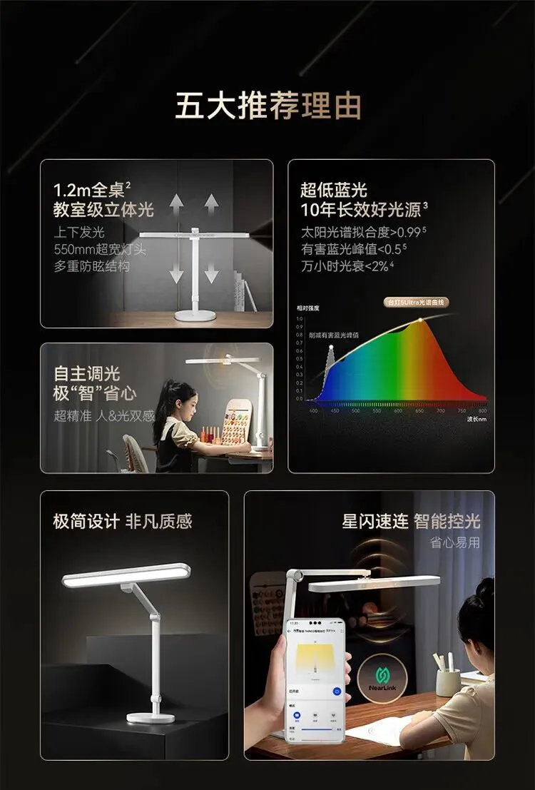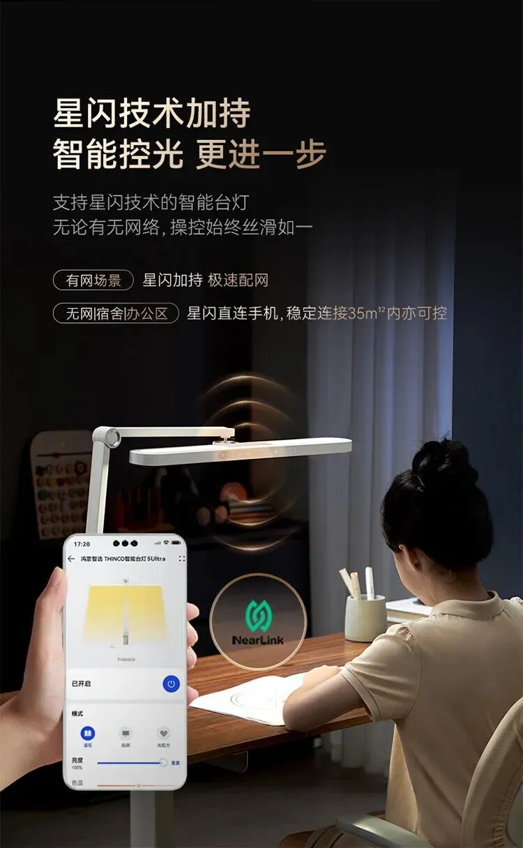鸿蒙智选THINCO智能护眼台灯学习学生防蓝光防近视全光谱感应灯5Ultra