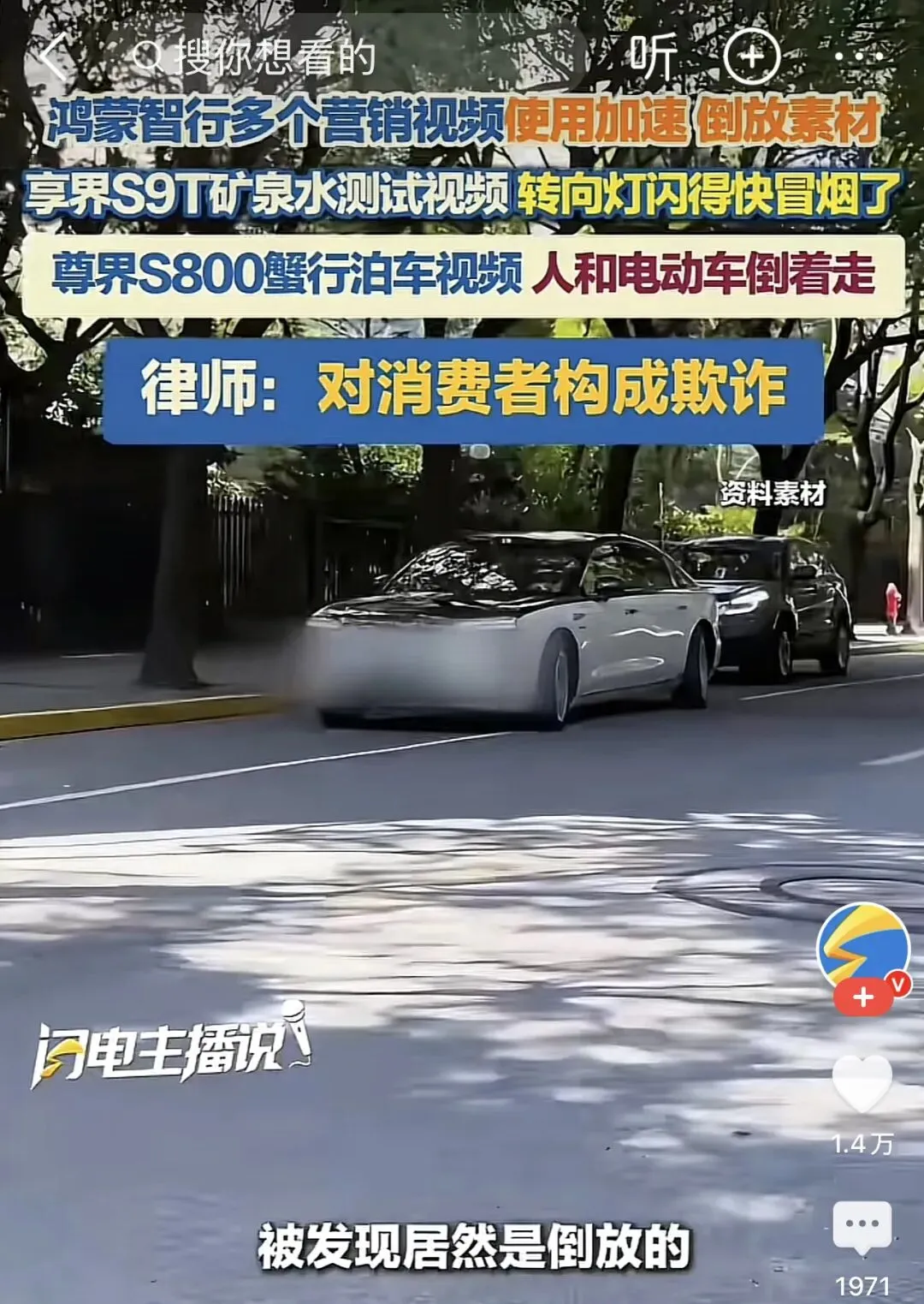 另外一段尊界S800的蟹行泊车宣传视频竟然直接是倒放视频,这多少有点不合适了!当然其实车企用这种方式宣传其实也很常见,但是你得进行标注或者说明,这次这些宣传视频甚至连小字都没有标注!
