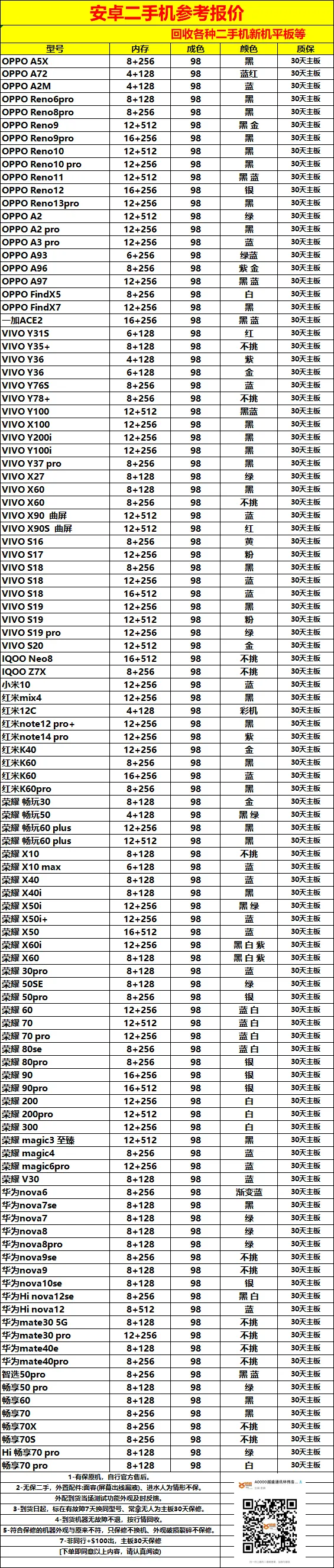 3月1日更新 全新华为MATE70,安卓三星荣耀 小米 OPPO机器一系列报价