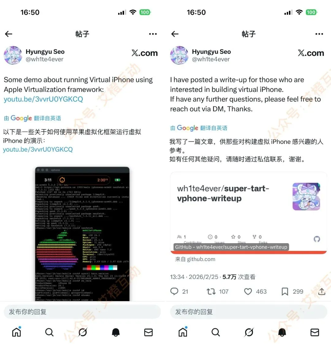 1,wh1te4ever 发布新技术,在 macOS 上虚拟 iOS 系统,拥有完整 root 权限,可以实现越狱,在越狱后可以安装 TrollStore Lite。