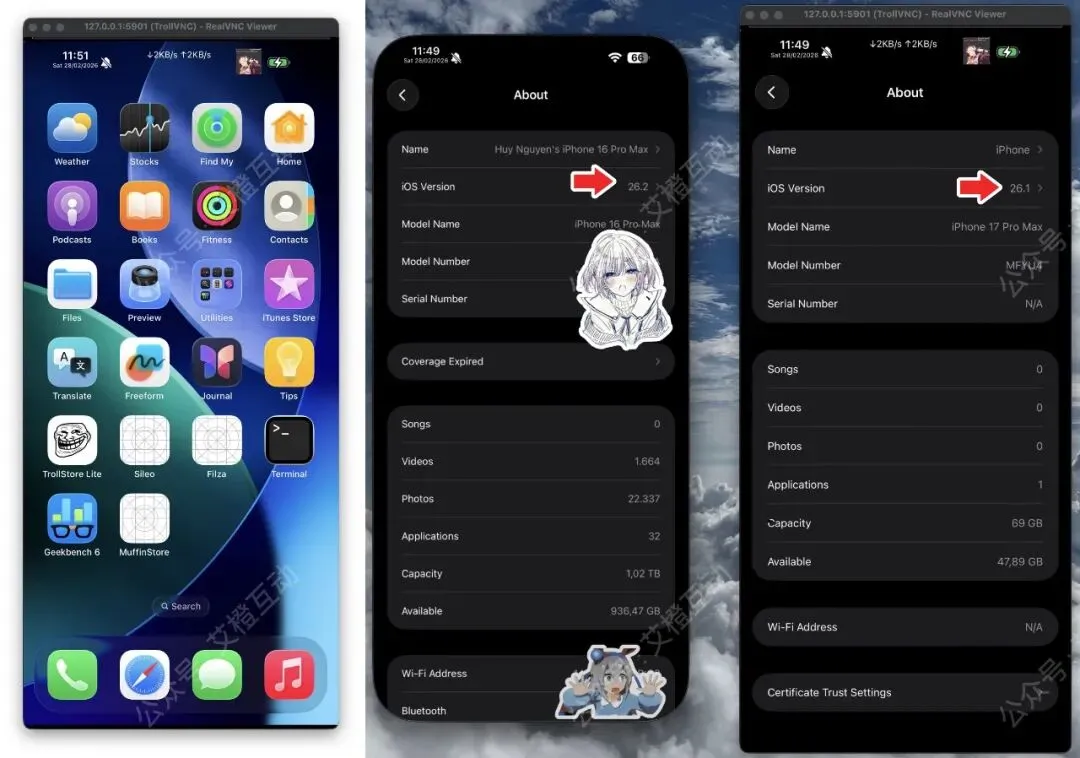 4,仅仅是在macOS 上虚拟 iOS 系统,一切都发生在电脑端的虚拟系统中,与真实手机端的 iOS 系统无关,并不是说 iOS 26 系统真的可以越狱了可以安装巨魔了。