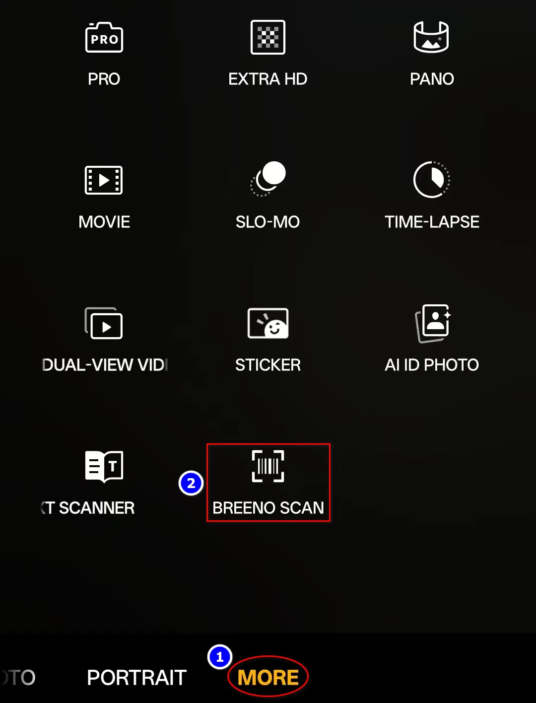比如oppo手机,在它的拍照更多选项里面选择小布扫一扫(点MORE→BREENO SCAN)。也可以运行小布扫一扫app,是一样的效果。