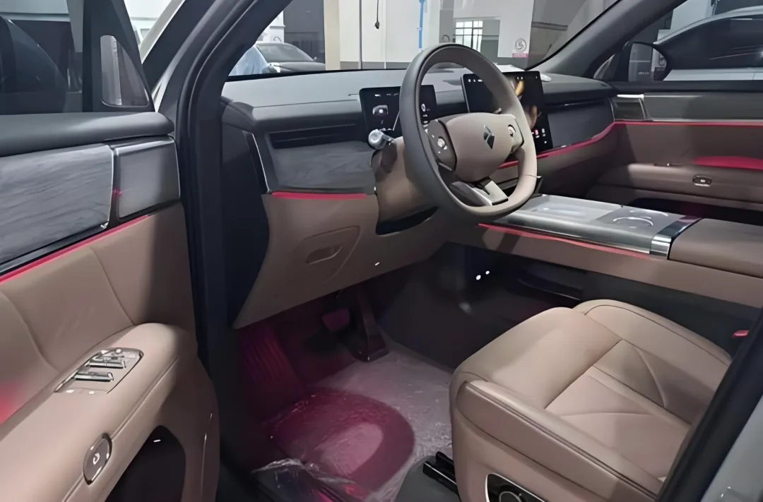 进入车内,宝骏华境S采用了饱和度很低的卡其色高档真皮材质铺陈,还加入了精致的白色缝线设计。就连不起眼的车顶和地毯也都采用了植绒面料铺陈,环抱式的座舱四周也加入了浅灰色实木饰板、金属饰板的点缀,再配上多色氛围灯,营造出了更加温馨、舒适、惬意的乘坐环境。环抱式中控台配备了平底式多功能方向盘,还加入了怀挡式换挡机构,为操控台腾出了更多的空间。全系标配华为乾崑ADS 4、华为鸿蒙座舱5以及华为乾崑车云。全车配备了Infinity燕飞利仕音响系统以及巴斯夫定制车漆,大大提升这款车的品质以及背书。