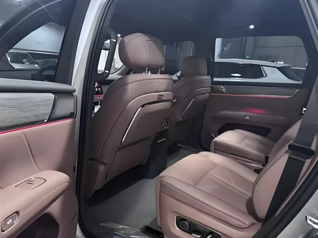 来到车身侧面,华境S炽焰鎏色最大的特点便是采用了迈巴赫同款的双拼车色,前舱盖、A柱、弧线形车顶以及D柱都加入了香槟色的涂装,车身加入了红色的车漆涂装,两种颜色在肩线巧妙的拼接在一起,外凸式的前后轮眉与优雅婉转的腰线融为一体,更加灵动。前翼子板处加入了直立式的挖孔槽设计,黑色的宽体侧裙与内侧的拱形轮眉连接在一起,并配备了21英寸的锅盖样式的封闭轮圈,中间还加入了重力感应式的轮组盖,匹配了265/45 R21规格的米其林PiLot Sport 4静音轮胎,强调静音性能与操控表现。车内采用了实用性很强的6座布局。尺寸方面,该车的长宽高5235/1999/1800mm,轴距3105mm。整车重量2470kg,最大满载重量3045kg。