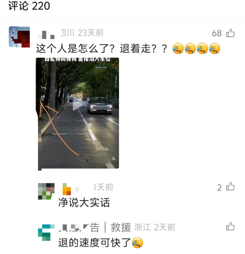 该视频评论区同样争议缠身,有网友疑惑表示,“这个人怎么一直往后退?看着很反常”,也有网友调侃,“这倒退的速度比正常走路还快,也太假了吧”。
