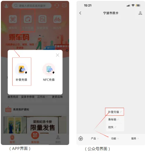 打开宁波市民卡微信公众号或APP,可进入补登充值页面。