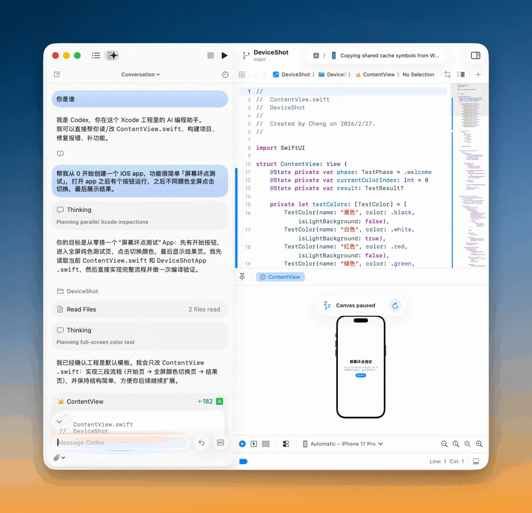 ✏️ 用自然语言告诉 AI 你想做什么(例如:“帮我创建一个显示欢迎画面的 App”)🤖 Xcode 会与 AI 代理合作自动生成相应代码与文件📦 然后 AI 还能帮你构建、检查错误、运行测试等