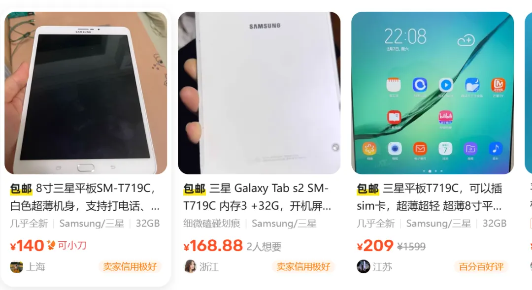 想找百元级别的实用平板,没必要只盯着全新机型,二手市场里有不少性价比超高的选择,三星 Galaxy Tab S2 T719C 就是很合适的一款,190 元左右就能入手,体验远超价格预期