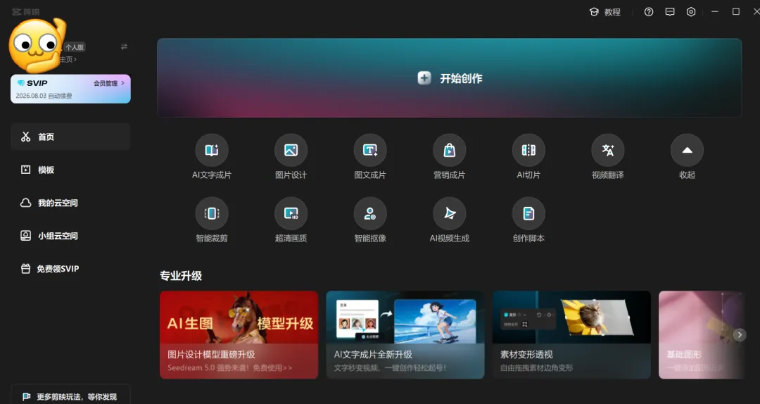 当前位置:首页>安卓APP>剪映手机电脑VIP破解版来了!电脑+安卓+苹果,所有高级功能0元用(2026.3.2亲测)
