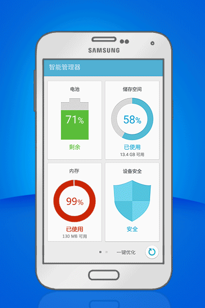 固件升级之后得到的智能管理器,能够从电池管理、储存空间、内存管理和设备安全四个方面,对手机做到全面健康保护。原来,智能管理器可以自动识别第三方应用,并对第三方应用进行后台活动监控,深度清除隐藏在系统深层的电量消耗源头,同时对恶意骚扰流氓软件做到一键拦截,定时清理无用垃圾,全面提高手机的运转速度。