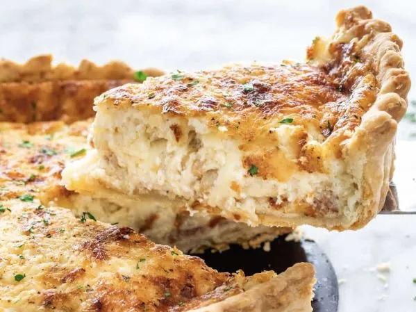 Quiche,一种用鸡蛋、奶油、芝士和肉类或者海鲜配以蔬菜做馅料的派。