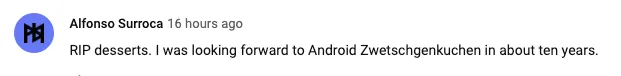 真的到了安卓Z,难道真的要像这位网友说的,叫 Zwetschgenkuchen(德语,甜李子派)吗?
