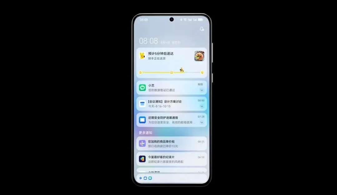 华为认识到,新闻通知、App 推送、优惠广告、消息提醒……手机通知栏充斥着大量冗余的信息推送,有价值的信息非常容易被淹没。鸿蒙 4 对通知中心进行了视觉优化,让重点消息更加清晰,用户可第一时间掌握最有价值的信息。