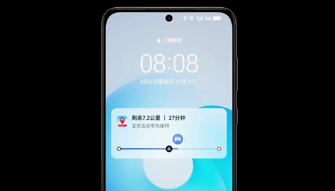 并且,实况窗还可以变身,可以是 AOD 屏幕、锁屏通知和通知中心的卡片,也可以是桌面状态下位于通知栏的胶囊。当然,基于鸿蒙的一贯特性,卡片和胶囊模式下也都是可交互的,多设备多类型屏幕适配的。