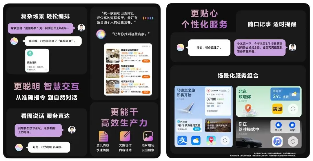 也是得益于大模型的能力小艺语音拥有强大的自然语言理解能力,很多含有专业名词的操作指令,完全可以更口语化的形式下达,比如老是记不住复杂操作的老人,就可以对手机说「我想把孙子的照片放到桌面上」,就可以完成桌面壁纸设置。